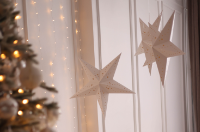 - okná s reťazami, hviezdami alebo záclonami