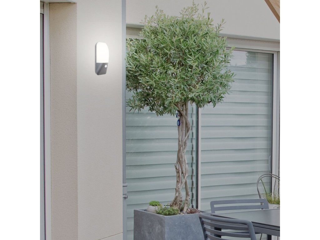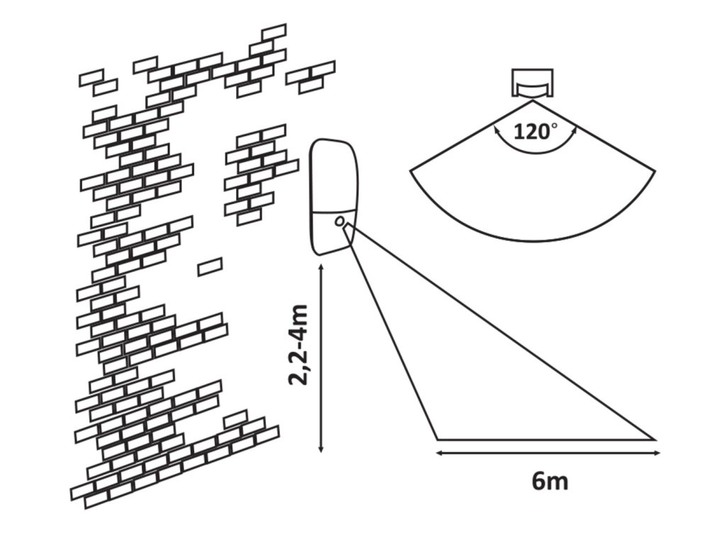 Detektor pohybu svietidla sníma pohyb na vzdialenosť až 6 metrov pod uhlom 120 ° a automaticky sa prispôsobuje dennému svetlu, čo zvyšuje jeho energetickú účinnosť. Svietidlo je vyrobené z kvalitného kovu a plastu a jeho kompaktné rozmery sú 220 mm na výšku, 120 mm na šírku a 72 mm od steny.