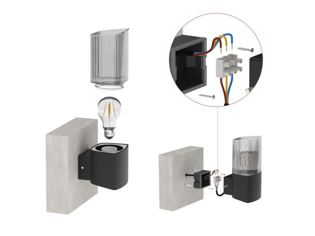 Krytie IP54 zaisťuje odolnosť voči striekajúcej vode i prachu, čo zaručuje dlhú životnosť a bezproblémové fungovanie aj pri nepriaznivom počasí. Svietidlo sa pripája priamo na elektrickú sieť 230 V a inštaluje sa na stenu.