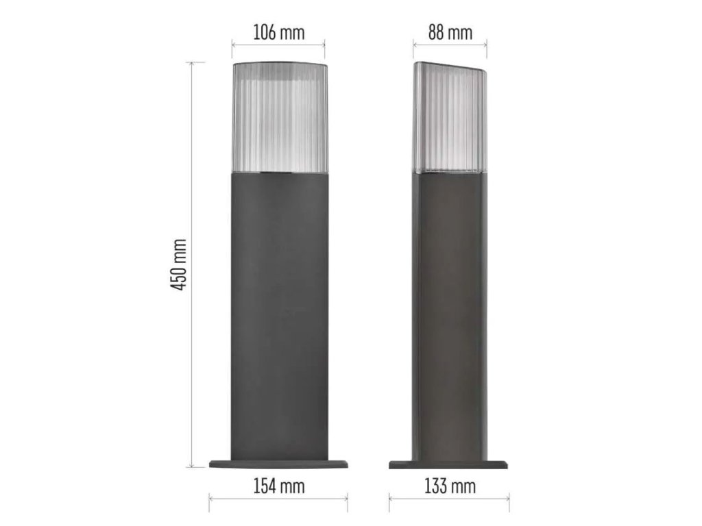 Rozmery svietidla sú 450 mm na výšku, 106 mm na šírku a 154 je šírka základne. Séria LANA ponúka spoľahlivé a elegantné riešenie vonkajšieho osvetlenia pre každú záhradu.