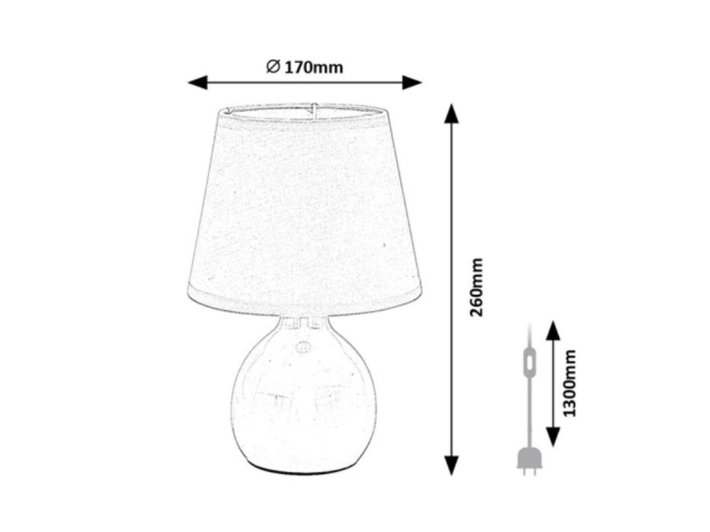 Celková výška lampy je 260 mm a priemer tienidla 170 mm, vďaka čomu sa hodí aj do menších priestorov. Dĺžka napájacieho kábla je približne 1,3 metra, čo umožňuje pohodlné zapojenie aj tam, kde nie je zásuvka priamo pri stolíku.