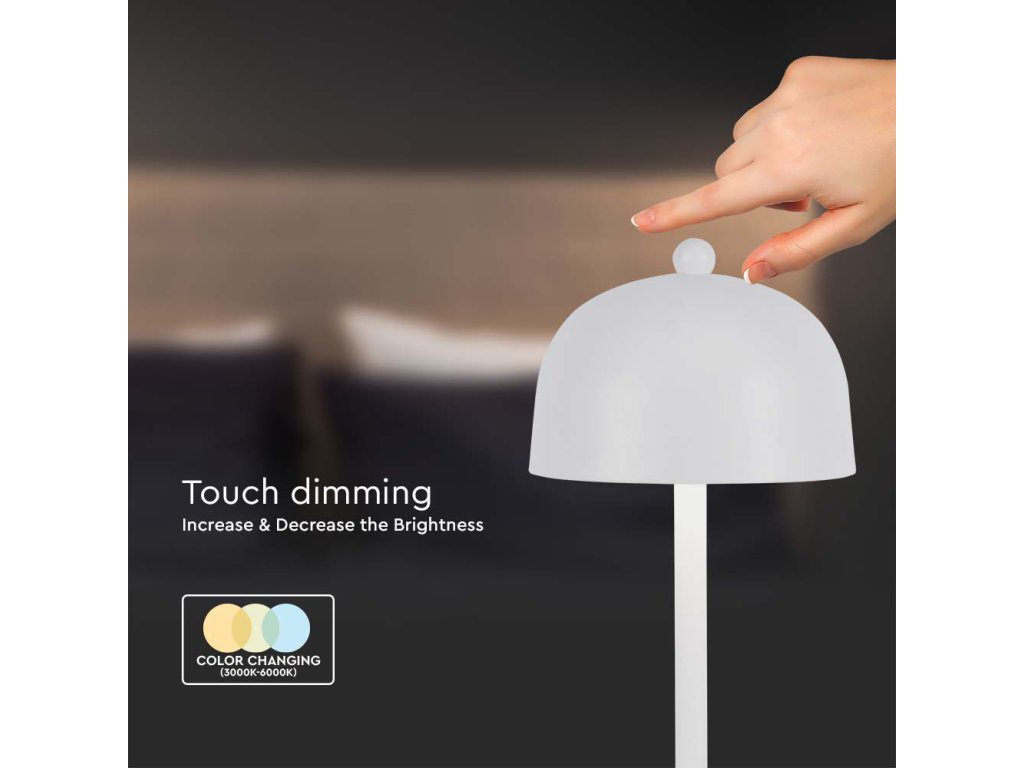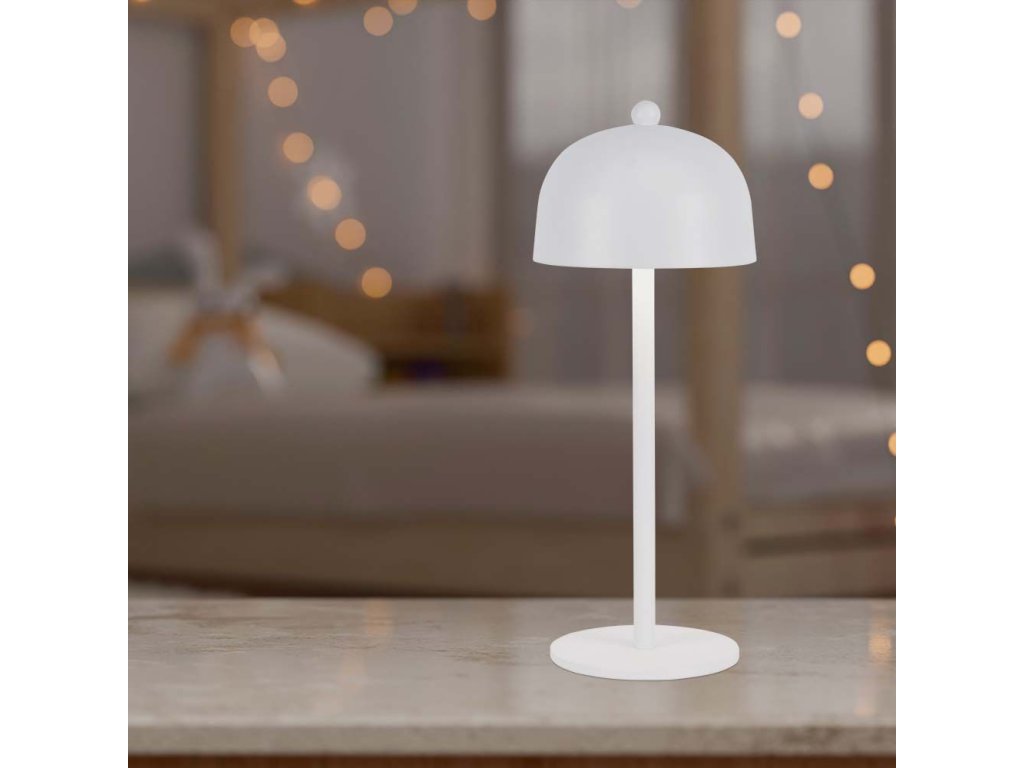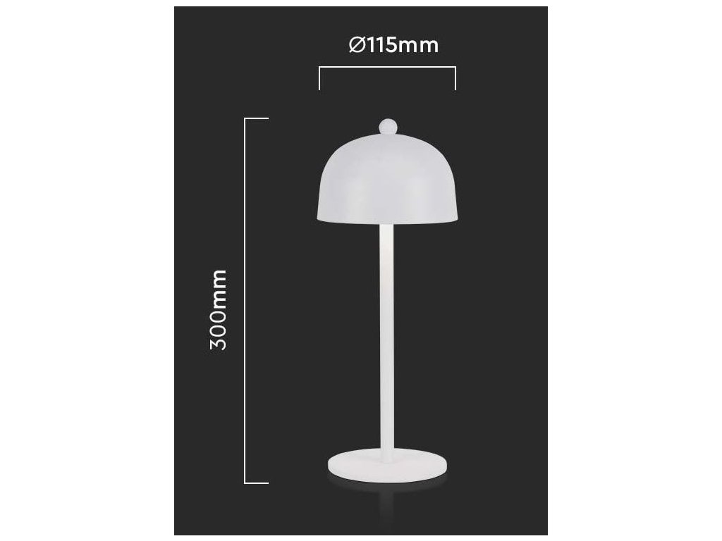 LED nabíjacia stolová lampička s výkonom 3W je skvelým doplnkom Vášho stola či už v domácnosti alebo v kancelárii. Táto elegantná lampička v bielom prevedení s rozmermi ø115 x 300mm je vyrobená z pevného a odolného kovu.