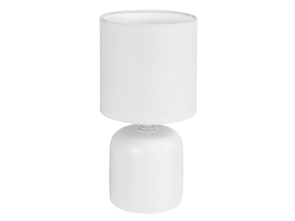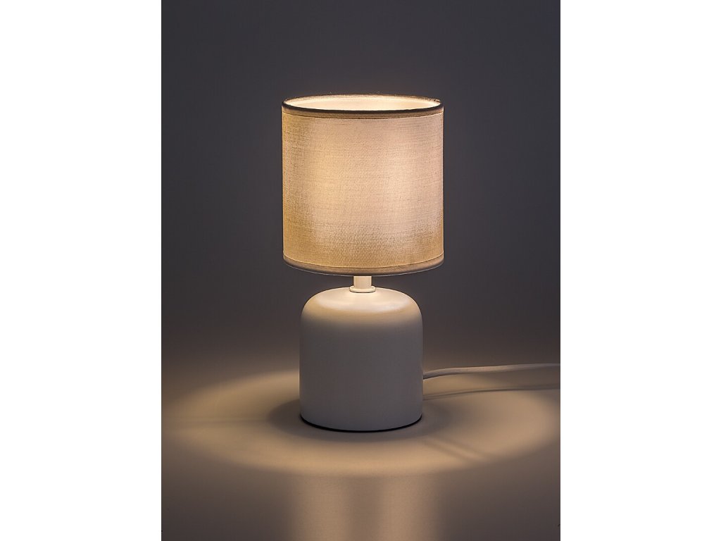 Telo lampičky je vyrobené z bielej keramiky a dopĺňa ho valcové textilné tienidlo, ktoré je otvorené zhora aj zdola. Vďaka tomu svetlo príjemne presvitá a rovnomerne osvetľuje okolitý priestor.