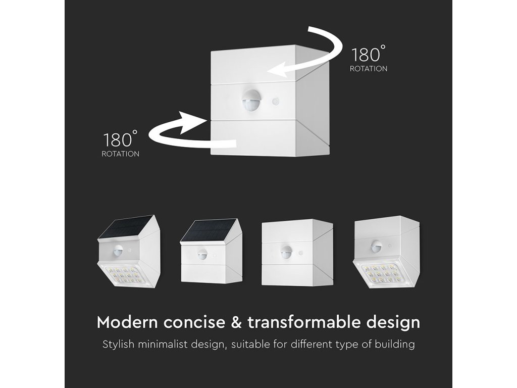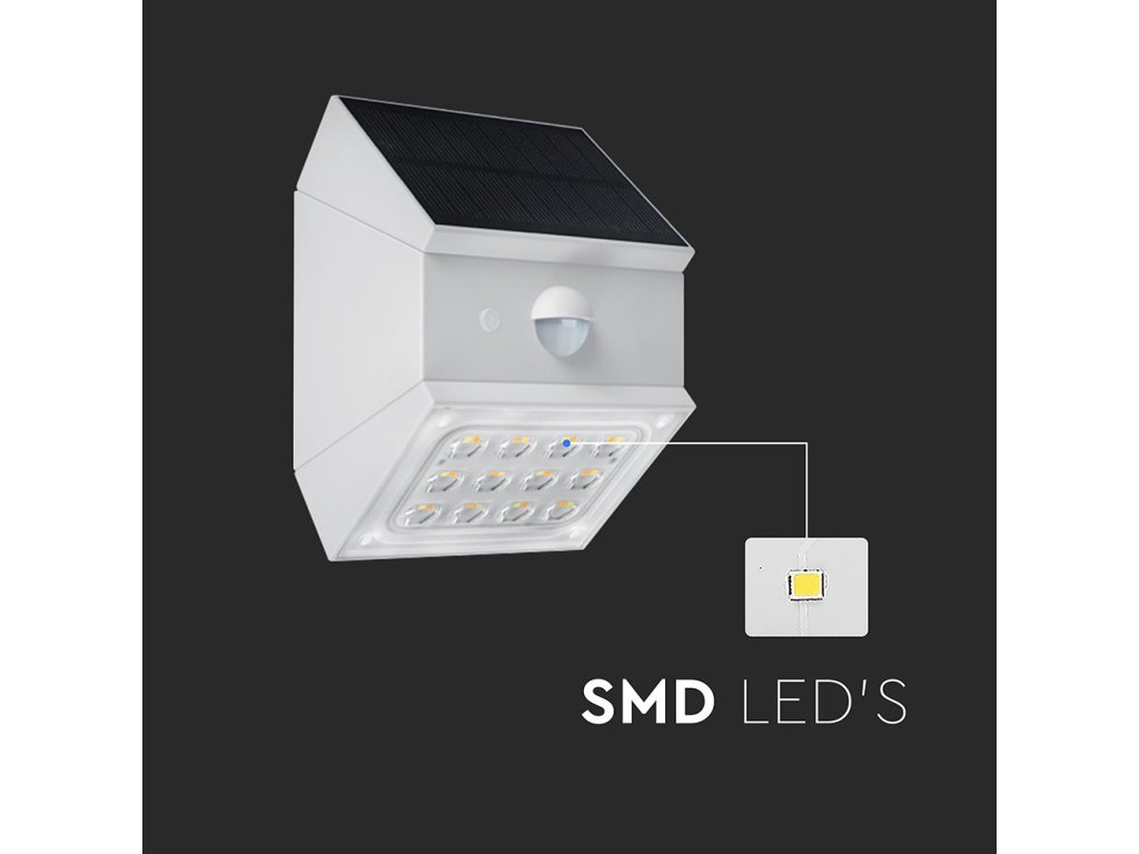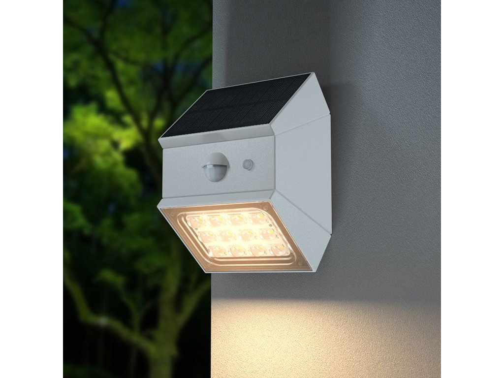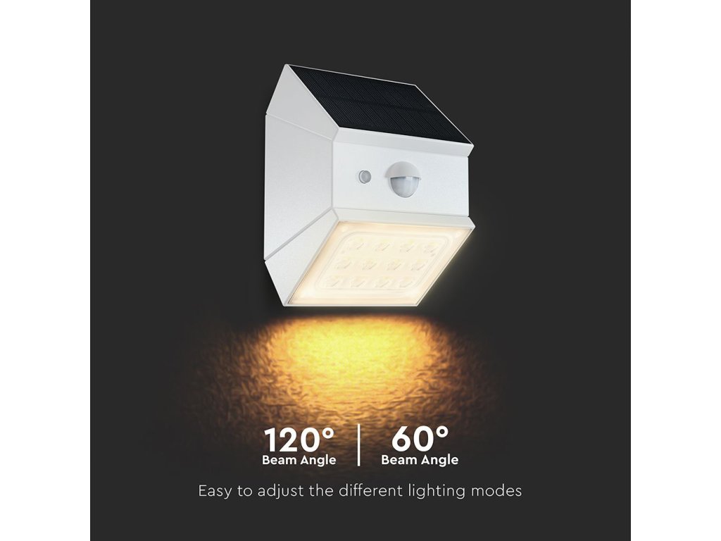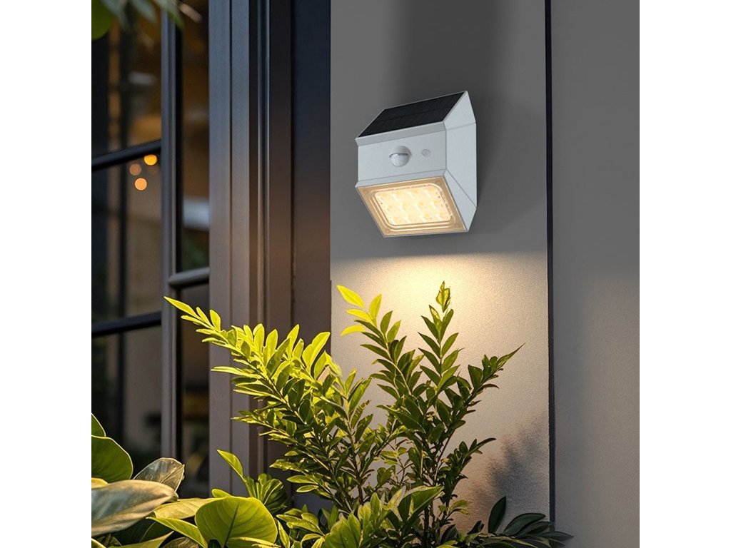 Biele LED fasádne solárne LED svietidlo s pohybovým čidlom 2,5W IP65 CCT