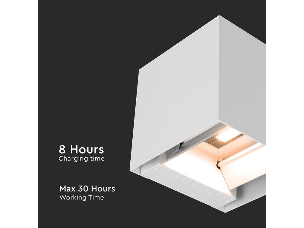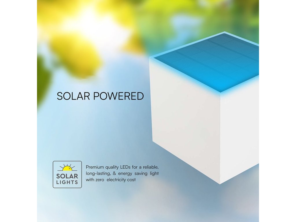 Svietidlo využíva monokryštalický solárny panel s výkonom 3W, ktorý napája integrovanú batériu Li-Ion 3,7V 2600mAh. Tá dokáže zaistiť prevádzku až 30 hodín na jedno nabitie. Plné nabitie prebehne približne za 8 hodín slnečného svitu. Konštrukcia s krytím IP65 je odolná voči dažďu aj prachu a svietidlo je tak vhodné na dlhodobé vonkajšie použitie. LED čipy sú skryté a neoslňujú, takže svetlo pôsobí kompaktne a neruší vzhľad fasády.
