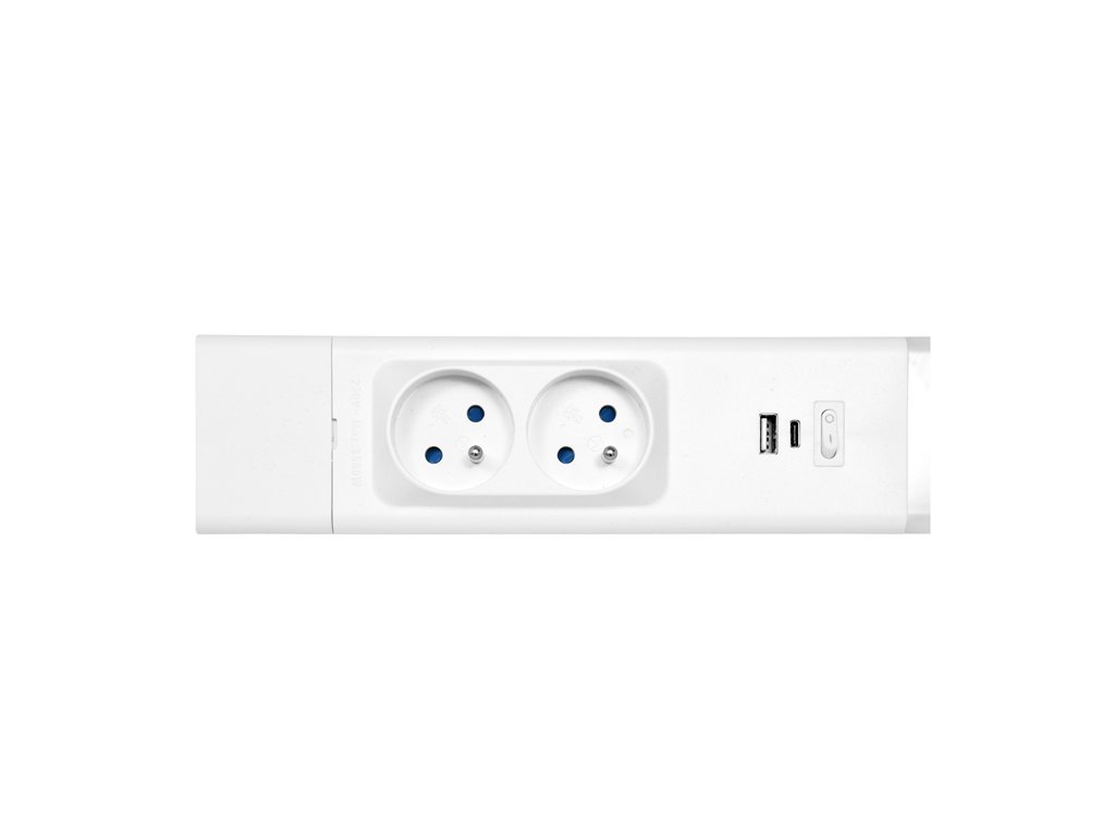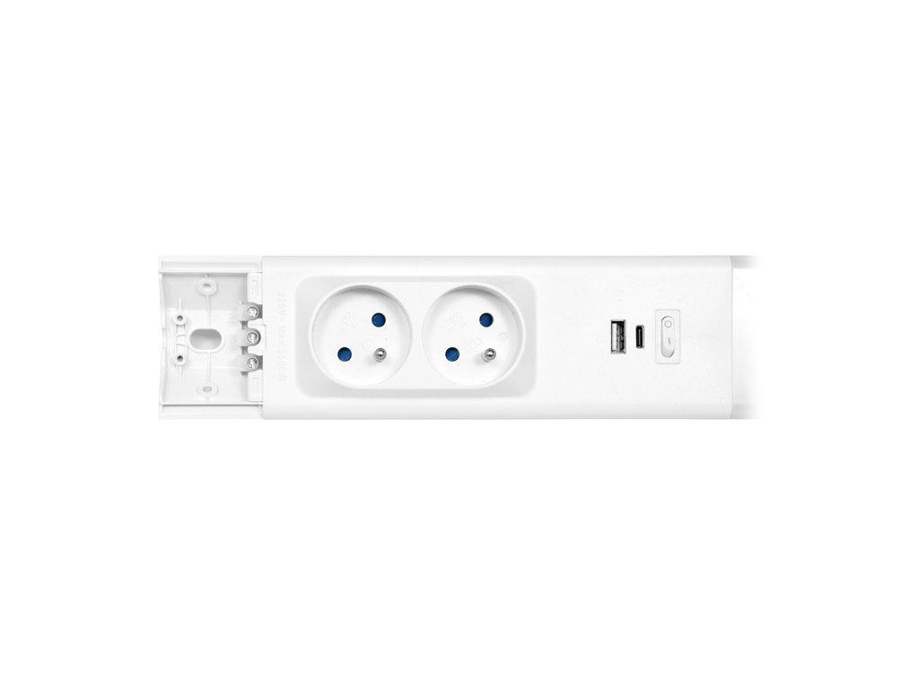 Biele LED svietidlo pod kuchynskú linku so zásuvkou a USB 60cm 18W