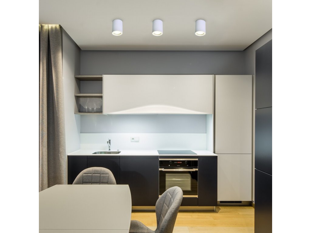Stropné svietidlo Koven zaujme čistým technickým dizajnom a kompaktným valcovým tvarom, vďaka ktorému sa jednoducho začlení do moderných interiérov. Biele kovové telo v kombinácii s decentným skleneným tienidlom pôsobí nadčasovo a nerušivo, pritom však ponúka presne smerované svetlo tam, kde je potrebné. Vďaka menším rozmerom je ideálne aj na inštaláciu vo viacnásobnom usporiadaní, napríklad v chodbách, nad kuchynskou linkou alebo ako doplnkové osvetlenie v obývacej izbe či spálni.