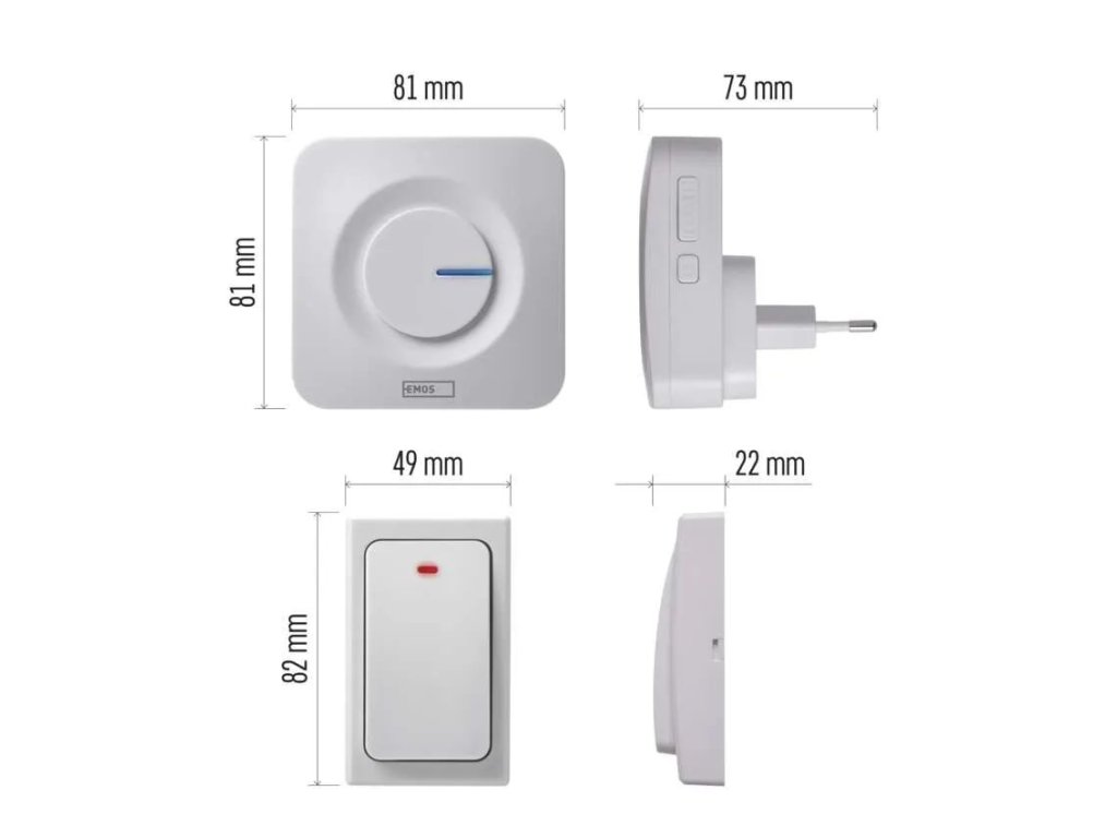 Rozmery | 22 x 49 x 82 mm (tlačidlo), 73 x 73 x 81 mm (zvonček) |