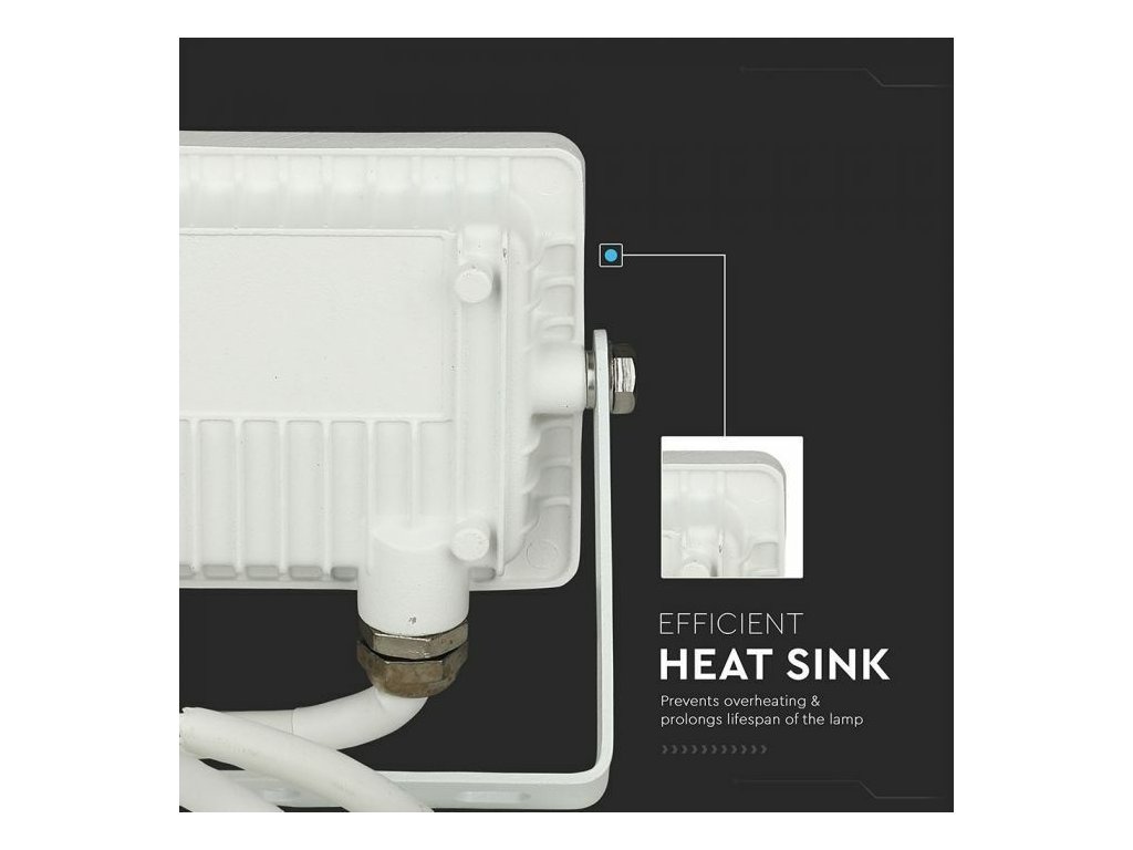 LED reflektor svieti okamžite po zapnutí na plný výkon. Je osadený výkonnými SMD LED diódami značky Samsung, vďaka čomu dosahuje vysokú svietivosť. Hliníkové šasi zabezpečuje účinný odvod tepla a zabraňuje prehrievaniu, čo prispieva k dlhej životnosti až 30 000 hodín. Reflektor je prachotesný a vodotesný. Nie je potrebné meniť halogénovú trubicu, preto je bezúdržbový.