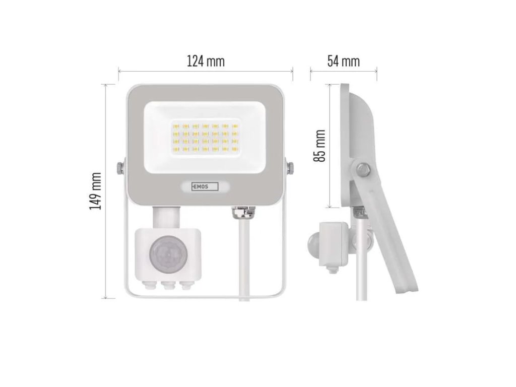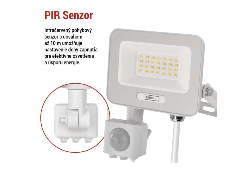 Biely LED reflektor 20W s pohybovým snímačom