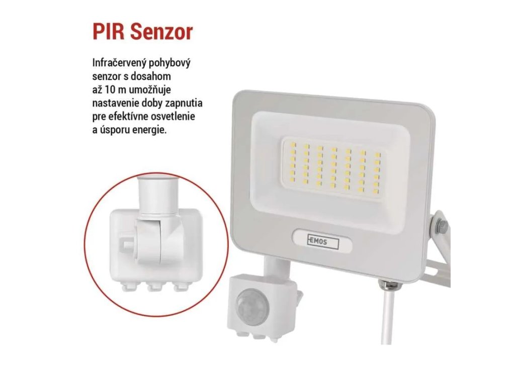Biely LED reflektor 30W s pohybovým snímačom