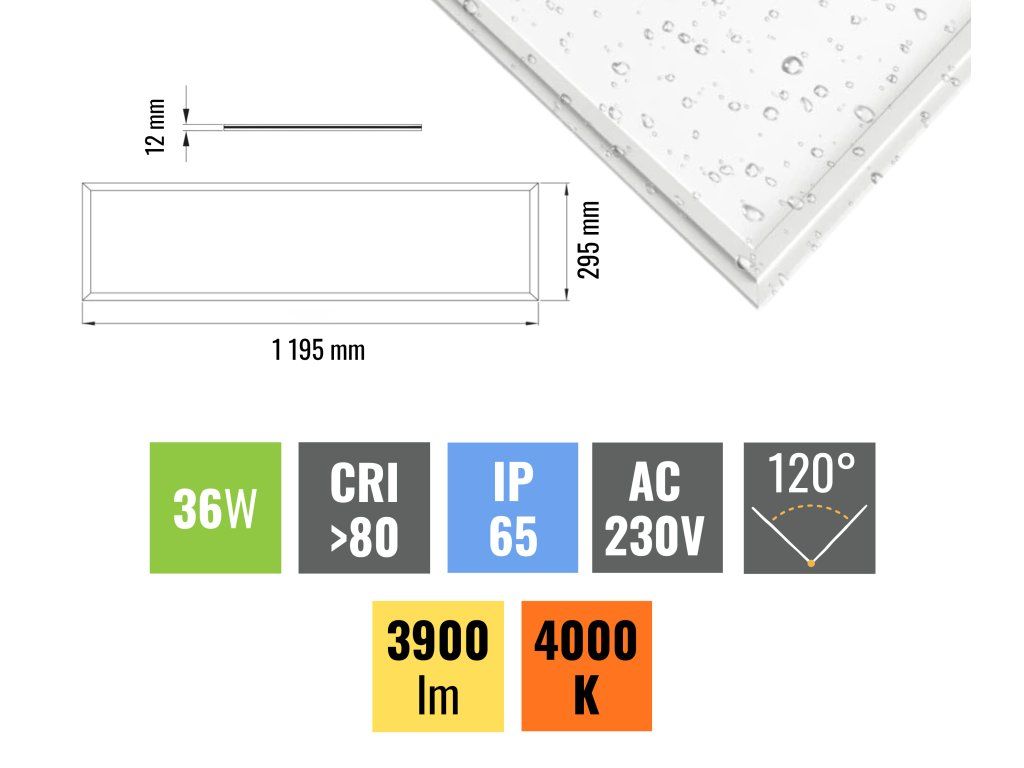 Biely podhľadový LED panel 30 x 120cm 36W IP65