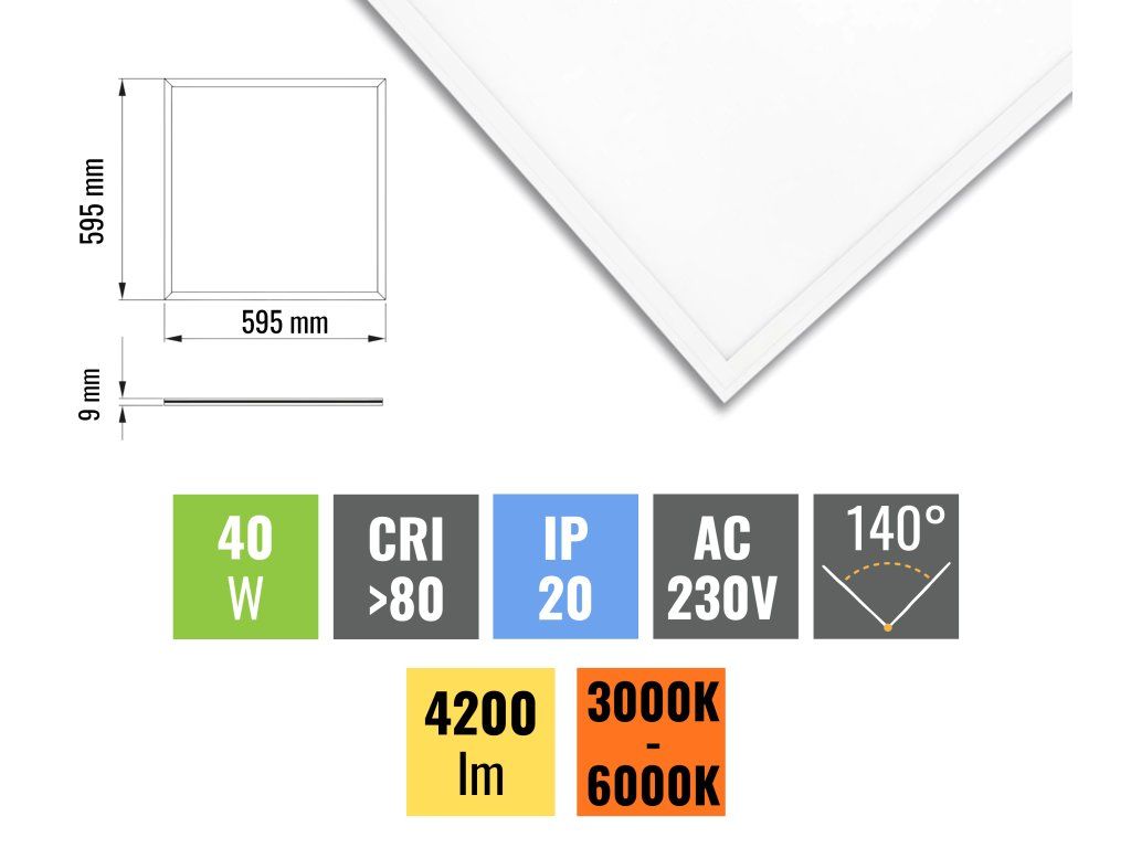 LED panel s bielym rámčekom a skvelú svietivosťou. Pri tomto CCT modeli je možné meniť teplotu (farbu) svetla od teplej bielej až po studenú. Panel možno tiež stmievať, teda regulovať intenzitu vyžiareného svetla. Využitie nájde napr. v učebniach, ordináciách alebo v projekčných štúdiách. Tento panel o výkone 40W a rozmere 60 x 60cm sa skvele hodí do podhľadových aplikácií. Najčastejšie je používaný do kazetových stropov, kde stačí len zapojiť panel k sieti. Nie je potrebné žiadne ďalšie príslušenstvo pre montáž panelov.