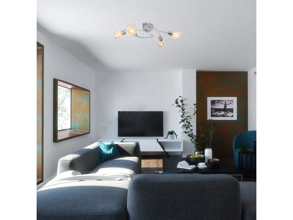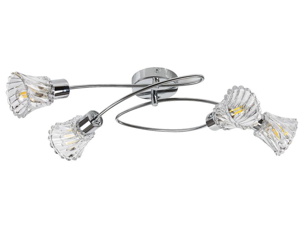 Stropné svietidlo Hestia s elegantným dizajnom a štyrmi svetelnými zdrojmi v klasickom štýle skvele doplní interiér obývacej izby alebo spálne. Kovové telo v chrómovom prevedení sa zaujímavo prepletá a vytvára dojem elegantných úponkov, ktoré oživia každý priestor. Priehľadné sklenené tienidlá v tvare zvonu majú jemne zvlnený povrch, ktorý dodáva svietidlu jedinečný charakter.