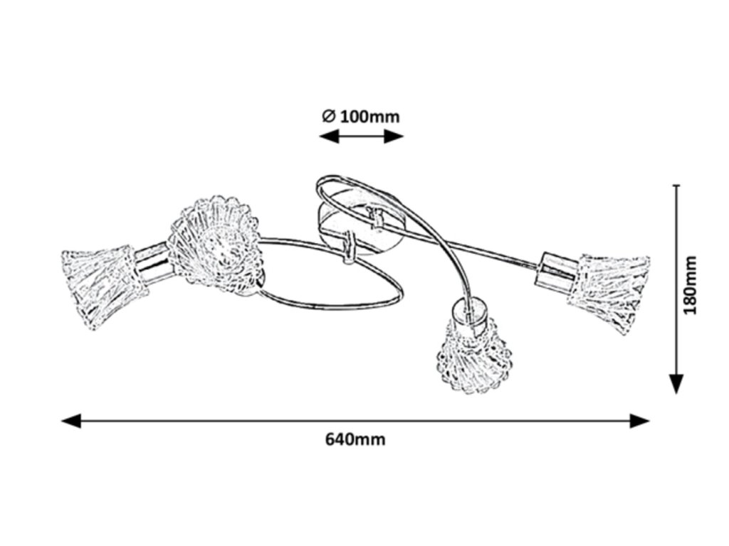 Svetlo je upevnené na strop pomocou okrúhleho dekoratívneho podstavca a ponúka rozmery: šírka 640 mm, vzdialenosť od stropu 180 mm a priemer montážneho podstavca 100 mm.