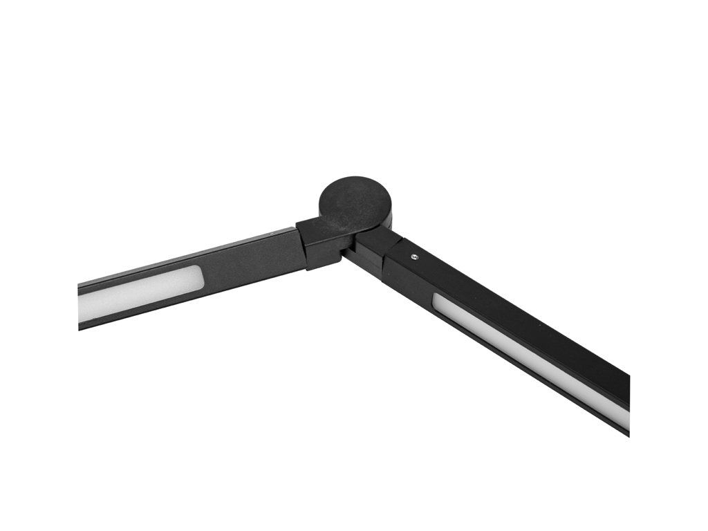 Konštrukcia lampy je navrhnutá s dôrazom na maximálnu flexibilitu. Tri otočné kĺby umožňujú nastavenie v rôznych uhloch a smeroch, takže svetlo nasmerujete presne tam, kde je potrebné. Vďaka otočným segmentom a podlhovastej svietiacej časti je osvetlenie rovnomerné a dobre pokrýva pracovnú plochu bez nežiaducich tieňov.