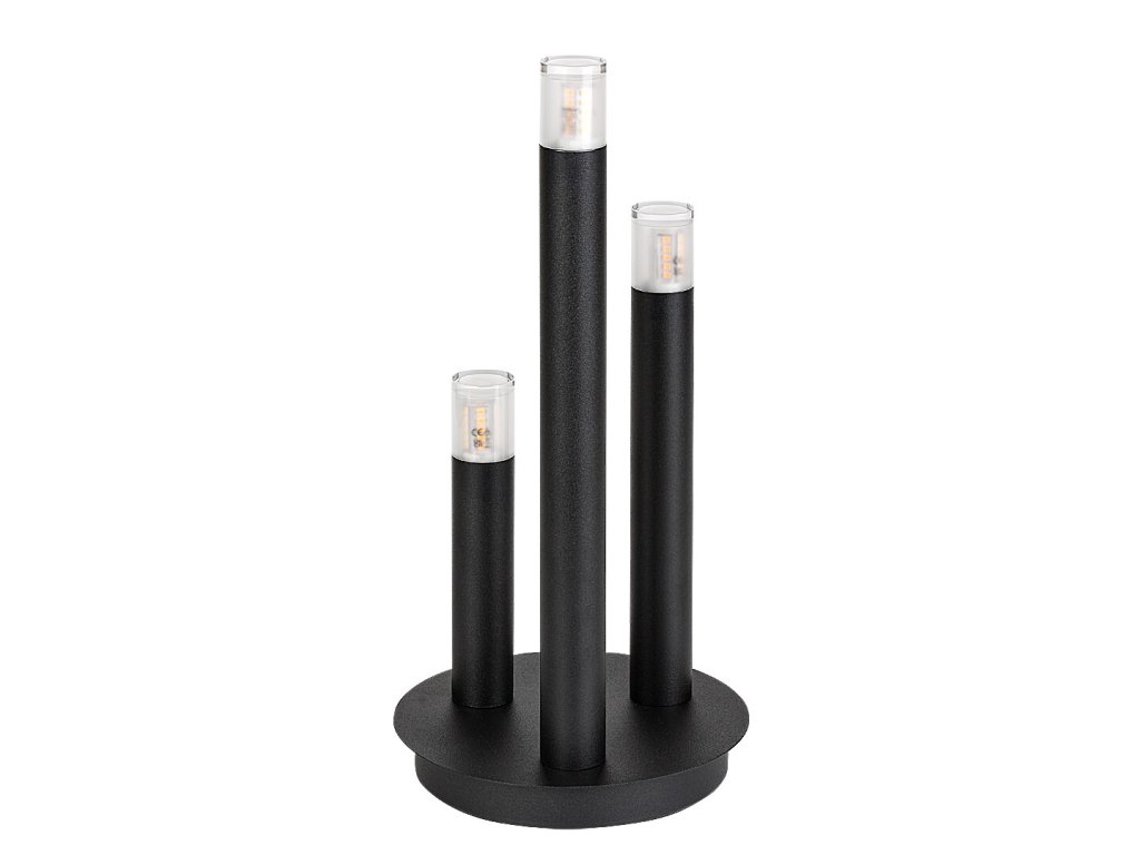 Stolová lampa Ramira zaujme originálnym dizajnom inšpirovaným sviečkami, ktorý kombinuje moderný vzhľad s dekoratívnou funkciou. Tri štíhle valcovité prvky rôznych výšok vystupujú z okrúhlej kovovej základne a spolu vytvárajú elegantnú svetelnú kompozíciu. Čierne kovové prevedenie pôsobí nadčasovo a kontrastuje s priehľadnými akrylovými tienidlami na hornej časti jednotlivých hlavíc, ktoré jemne rozptyľujú svetlo a zvýrazňujú svetelný efekt. Vďaka výraznému, no vyváženému dizajnu sa lampa hodí ako štýlový doplnok do obývačky, spálne, jedálne aj modernej kuchyne.