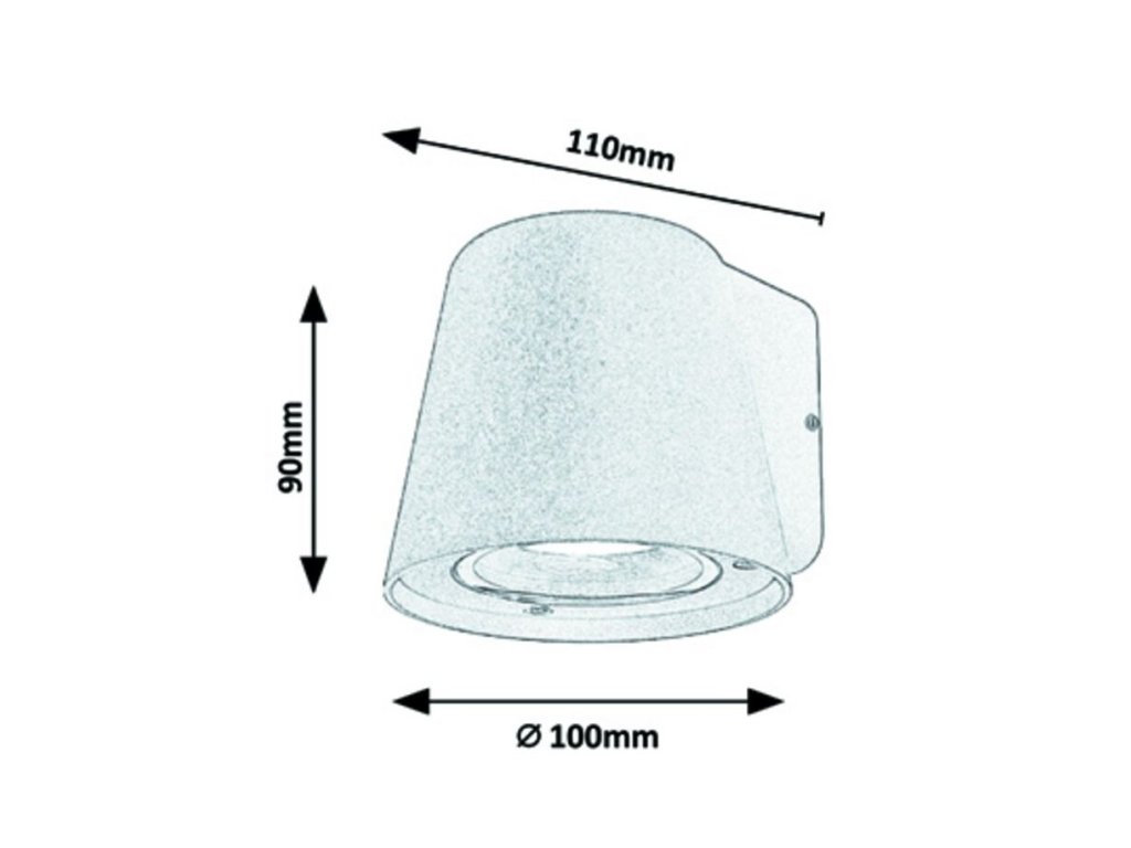 Krytie IP54 zaisťuje vysokú odolnosť voči prachu a vode, takže je svietidlo vhodné aj do náročnejších vonkajších podmienok. Rozmery svietidla sú 100 mm na šírku, 90 mm na výšku a 110 mm vzdialenosť od steny.
