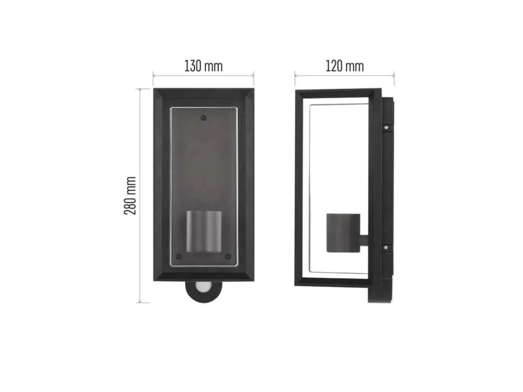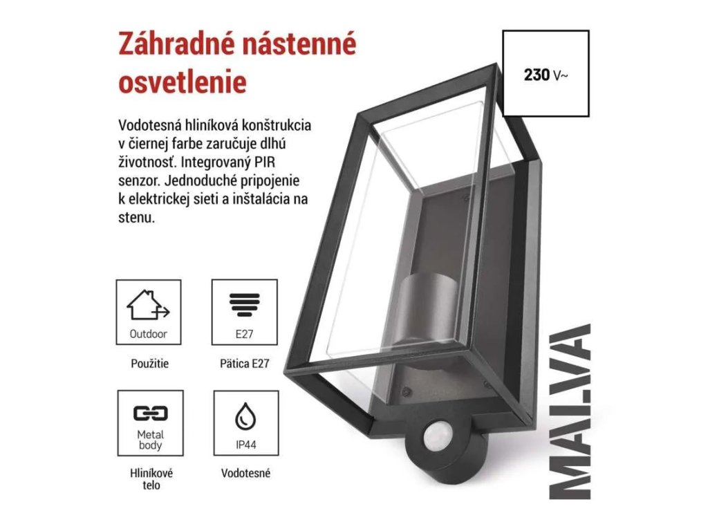 Čierne fasádne svietidlo s pohybovým čidlom Malva pre žiarovku E27