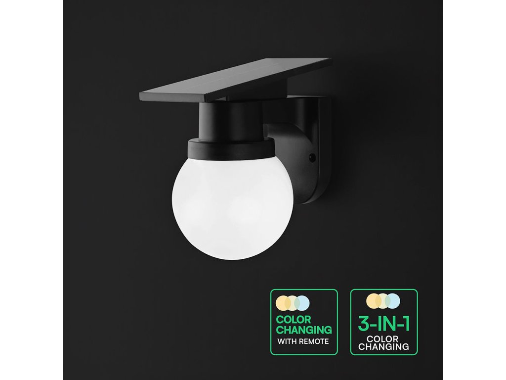 Čierne LED fasádne solárne svietidlo okrúhle 0,9W IP54 CCT s DO
