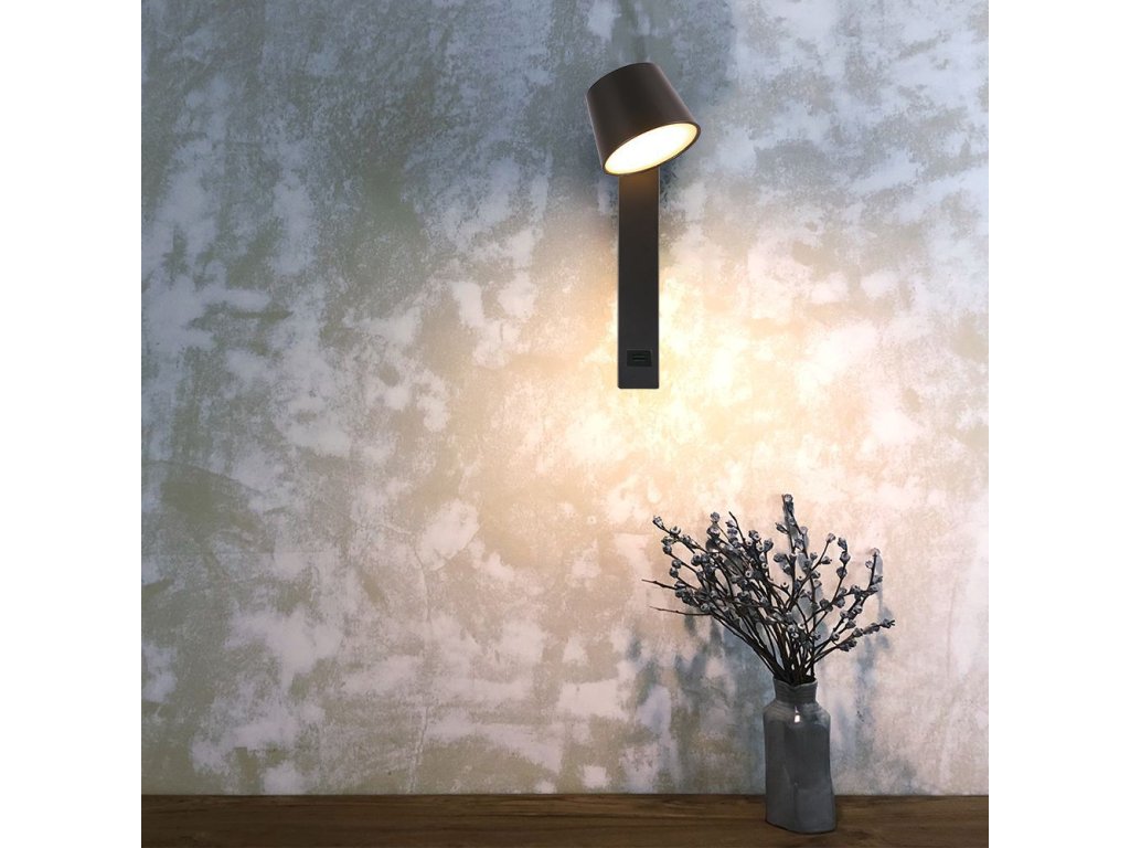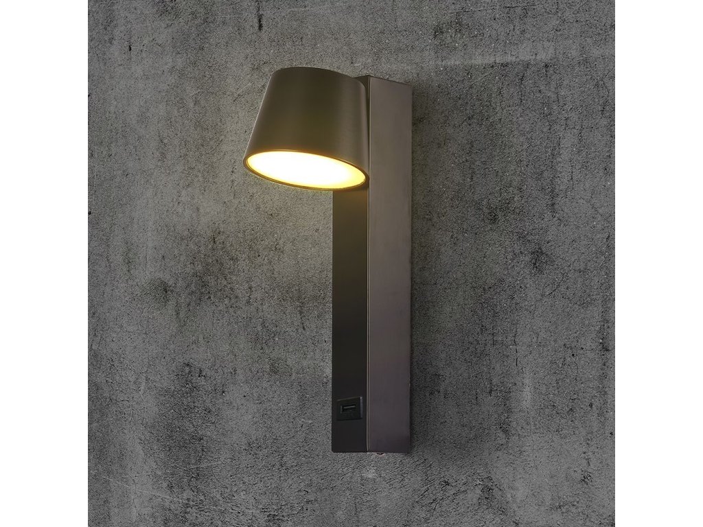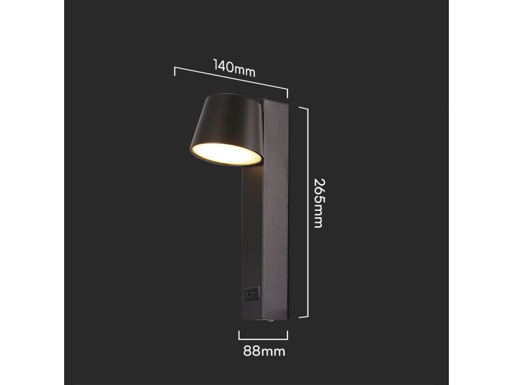 Čierne nástenné LED svietidlo kužeľové s USB portom 8W