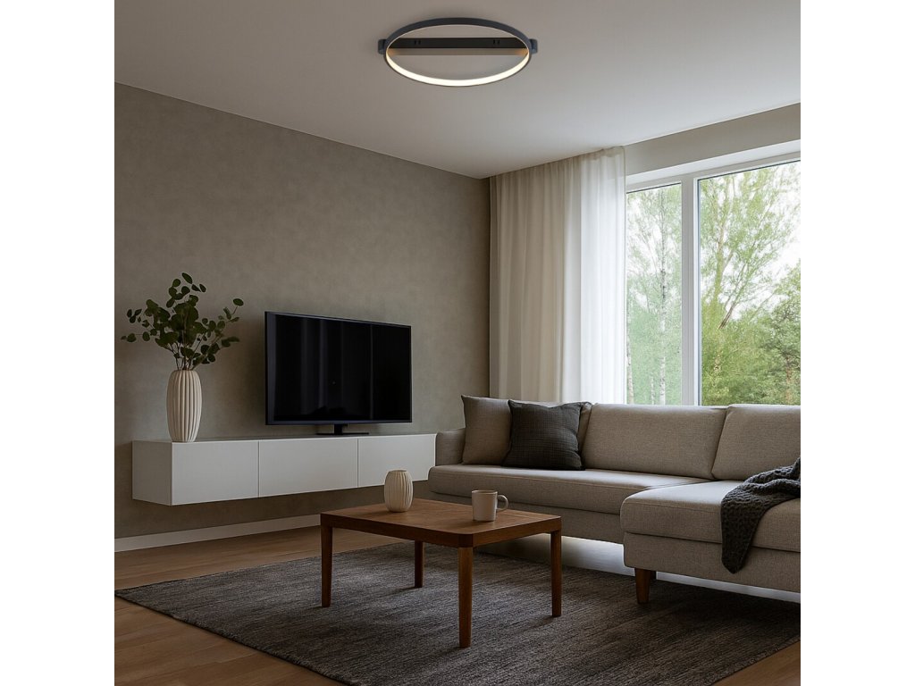 Stropné svietidlo Beliza zaujme čistým moderným dizajnom v podobe elegantného kruhu, ktorý sa stane výrazným, no zároveň nenápadným prvkom interiéru. Čierne kovové telo pôsobí nadčasovo a kontrastuje s bielym silikónovým tienidlom umiestneným po vnútornom obvode kruhu, vďaka ktorému svietidlo vyžaruje svetlo rovnomerne a bez oslnenia. Dekoratívna stropná základňa so zaoblenými koncami podčiarkuje celkovo uhladený vzhľad a prispieva k esteticky čistému uchyteniu k stropu.
