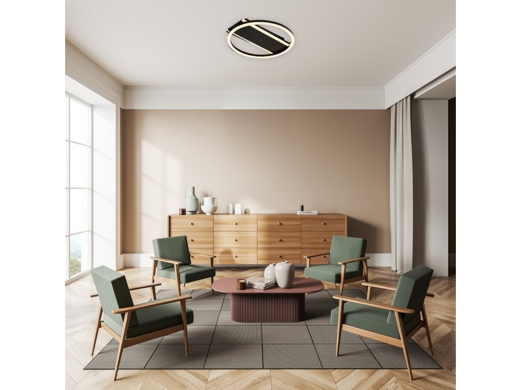 Integrovaný LED svetelný zdroj s výkonom 24 W poskytuje svetelný tok 1 680 lúmenov, čo je vhodné pre bežné obytné priestory. Teplota chromatickosti 3000 K vytvára príjemné teplé biele svetlo, ktoré podporuje útulnú a pokojnú atmosféru. Svietidlo je ideálnou voľbou do obývacej izby, jedálne alebo spálne, kde poslúži ako hlavný svetelný prvok aj dizajnový doplnok.