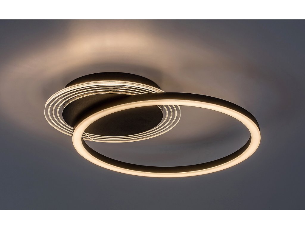 Stropné svietidlo Kerstin zaujme moderným a harmonickým dizajnom založeným na kombinácii dvoch kruhových prvkov rôznych veľkostí. Čierne kovové telo pôsobí elegantne a nadčasovo, zatiaľ čo biele akrylové tienidlo zabezpečuje rovnomerné rozptýlenie svetla bez oslnenia. Menší diskový prvok slúži ako dekoratívna stropná montážna základňa a plynule nadväzuje na väčší svetelný kruh, ktorý dodáva svietidlu ľahký a vzdušný vzhľad.