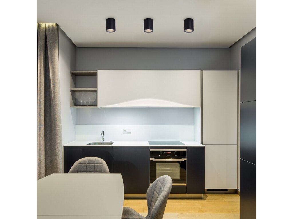 Stropné svietidlo Koven zaujme čistým technickým dizajnom a kompaktným valcovým tvarom, vďaka ktorému sa jednoducho začlení do moderných interiérov. Čierne kovové telo v kombinácii s decentným skleneným tienidlom pôsobí nadčasovo a nerušivo, pritom však ponúka presne smerované svetlo tam, kde je potrebné. Vďaka menším rozmerom je ideálne aj na inštaláciu vo viacnásobnom usporiadaní, napríklad v chodbách, nad kuchynskou linkou alebo ako doplnkové osvetlenie v obývacej izbe či spálni.