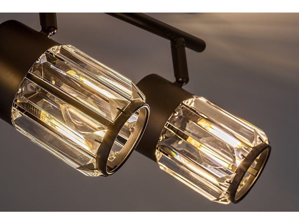 Stropné svietidlo Venaro s tromi svetelnými prvkami ponúka nadčasový dizajn, ktorý sa ľahko kombinuje s modernými aj klasicky ladenými interiérmi. Čierna kovová konštrukcia je doplnená valcovými sklenenými tienidlami s výrazným kryštálovým efektom, ktoré dodávajú svietidlu dekoratívny charakter a vytvárajú zaujímavé svetelné odlesky.