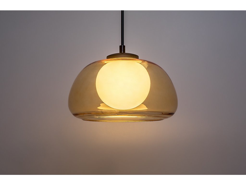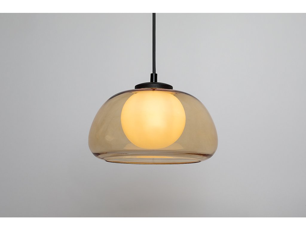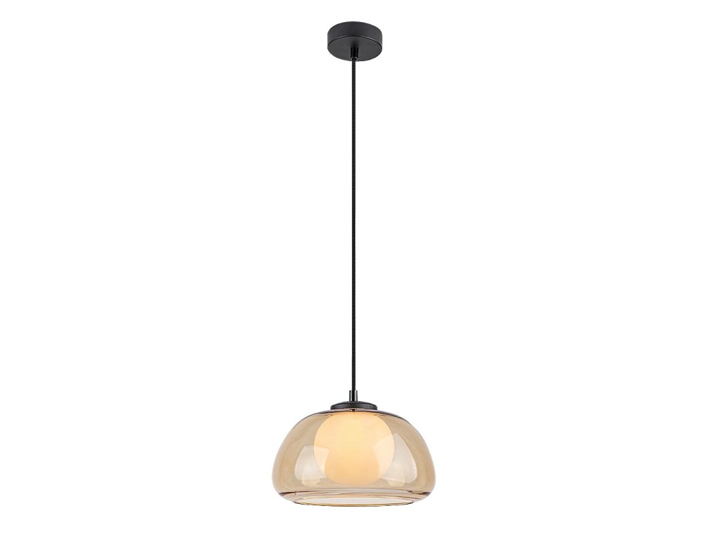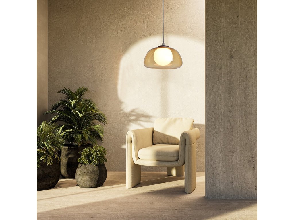 Závesné svietidlo Elowen s jantárovým tienidlom zaujme elegantnou kombináciou jemne zaoblených tvarov a kontrastu skla s čiernym kovom, vďaka čomu pôsobí moderne, vzdušne a zároveň nadčasovo. Harmonické spojenie vonkajšieho skleneného tienidla v teplom jantárovom odtieni a vnútornej bielej sklenenej gule vytvára príjemný svetelný efekt a dodáva interiéru útulnú atmosféru. Svietidlo je vhodnou voľbou do obývacej izby, jedálne, kuchyne aj spálne, kde poslúži ako decentné hlavné alebo doplnkové osvetlenie.