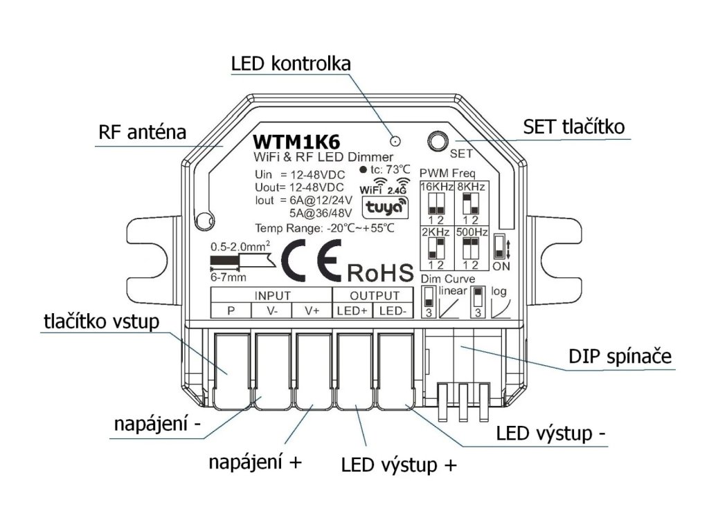 DimLED SMART mini prijímač TUYA pre jednobarevné LED pásiky
