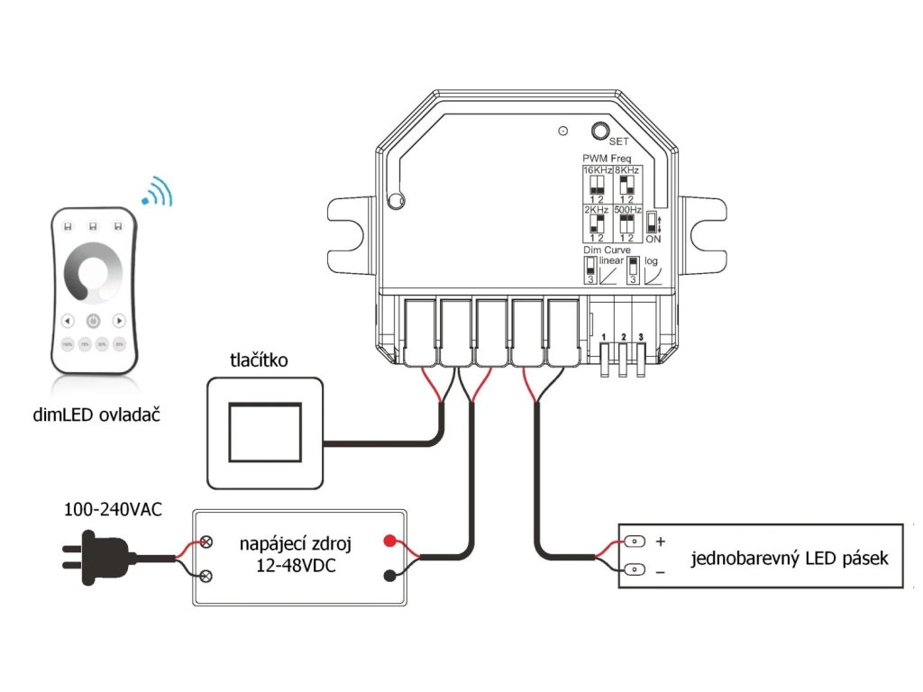 Inteligentný mini prijímač dimLED je určený na bezdrôtové ovládanie jednobarevných LED produktov napájaných napätím 12 až 48 V. Vďaka veľmi kompaktným rozmerom je vhodný aj do inštalácií s obmedzeným priestorom – možno ho jednoducho umiestniť pod vypínač, do inštalačnej krabice, sadrokartónového podhľadu alebo za stenu bez nutnosti priamej viditeľnosti medzi prijímačom a ovládacím prvkom.