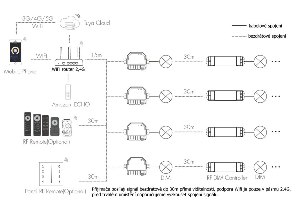 Prijímač umožňuje inteligentné ovládanie osvetlenia prostredníctvom mobilnej aplikácie Tuya alebo Smart Life, a to odkiaľkoľvek cez WiFi pripojenie. Osvetlenie je možné pohodlne zapínať, vypínať aj plynule stmievať pomocou telefónu alebo tabletu a prijímač je možné začleniť aj do systému inteligentnej domácnosti s podporou hlasového ovládania, napríklad prostredníctvom Amazon Alexa. Zároveň zostáva zachovaná plná kompatibilita so všetkými diaľkovými ovládačmi radu dimLED.