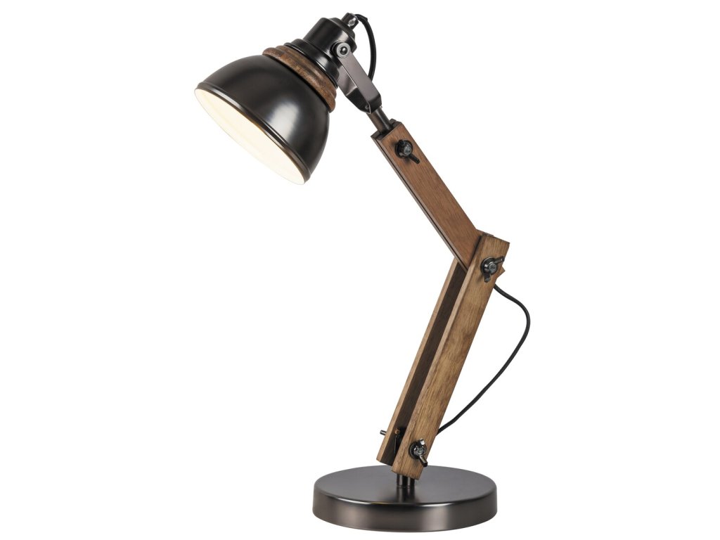Stolová lampa Aksel je kombináciou moderného dizajnu a prírodných materiálov, ktorá dodá vášmu interiéru jedinečný charakter. Elegantné prevedenie v kombinácii dreva a kovu pôsobí harmonicky a ľahko zapadne do klasických aj moderných interiérov. Antracitové kovové tienidlo v spojení s dreveným ramenom v bukovom odtieni vytvára sofistikovaný vzhľad, ktorý skvele vynikne na pracovnom stole, nočnom stolíku či poličke.