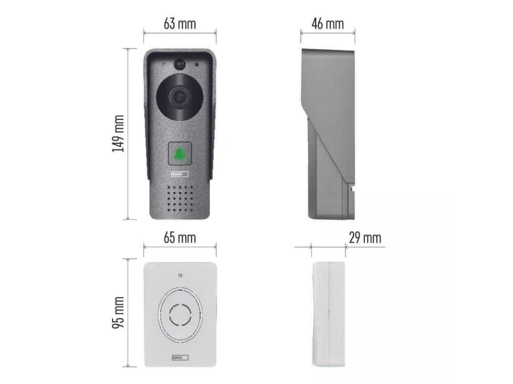 | Rozmery | 149 x 63 x 46 mm (kamerová jednotka), 95 x 65 x 29 mm (zvonček) |