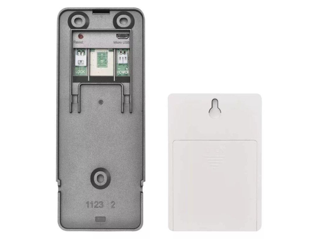 - Dverný zvonček je chránený bezpečnostnou upevňovacou skrutkou a alarmom o sile 85dB proti neoprávnenej manipulácii.