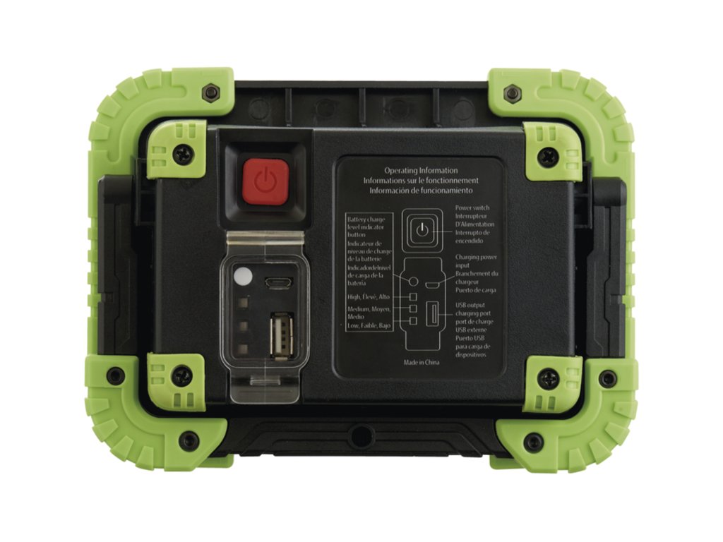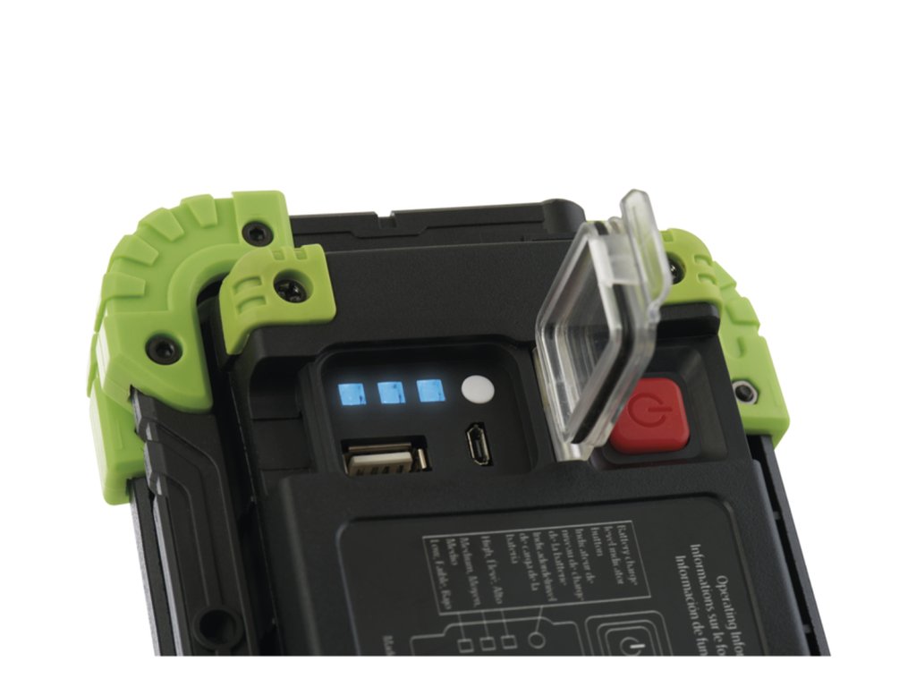 Na jeho zadnej strane nájdete malé odklápacie okienko, pod ktorým sú bezpečne ukryté 2 USB porty. Pomocou toho menšieho (USB-B) reflektor dobíjate, ten väčší (USB-A) vám naopak umožňuje odčerpať nahromadené energiu dostať zase von - treba si z neho v prípade núdze nabiť mobil. O stave nabíjania aj zostávajúcim množstvo energie v reflektore vás priebežne informuje modrá LED indikácia.