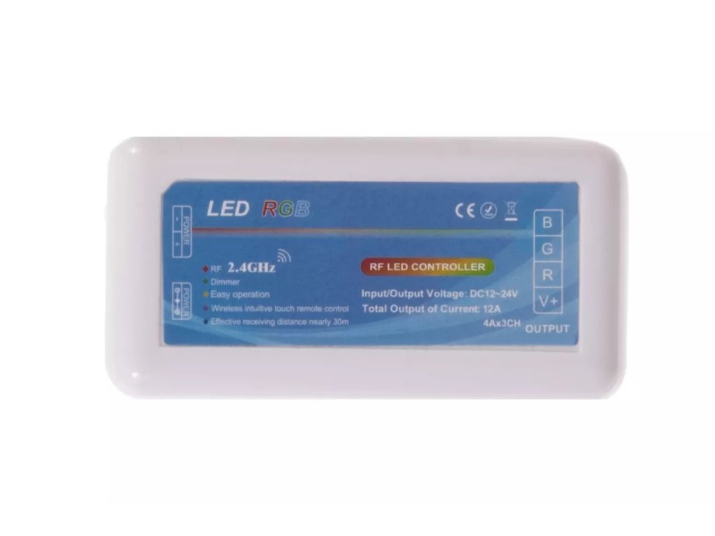 RGB LED ovládač 3-kanálový RF (rádiofrekvenčný) pre diaľkové ovládanie intensity jasu RGB LED pásikov, modulov a ďalších DC 12-24V RGB LED produktov. Prijímač môže byť ukrytý (za stenou, sadrokartónom či v skrini), nie je nutná priama viditeľnosť prijímača pre ovládač. LED ovládač Largo umožňuje ovládať až 3 zóny samostatne. Pokiaľ chcete ovládať viac zón, je nutné zakúpiť ďalšiu sadu ovládača Largo, u tohto modelu sa prijímače samostatne nepredávajú.