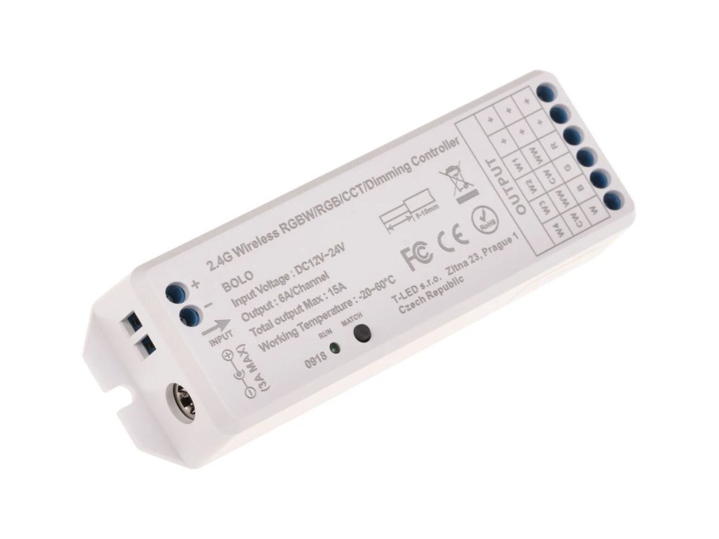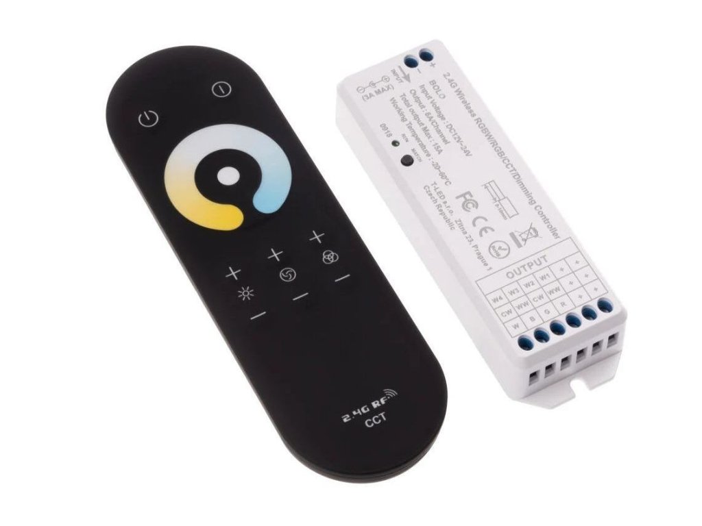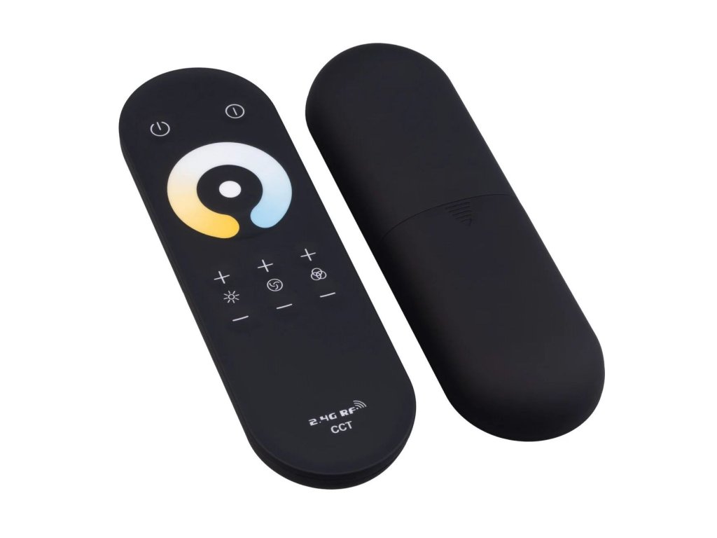 Jednokanálový RF stmievač a vypínač umožňuje pohodlné diaľkové ovládanie aj ovládanie farby a jasu CCT LED produktov na 12-24V DC ako sú CCT LED pásky, CCT LED moduly a ďalšie. Vďaka rádiofrekvenčnej technológii nie je nutná priama viditeľnosť medzi ovládačom a prijímačom, čo umožňuje skrytie prijímača za múrom, sadrokartónom alebo v skrini.