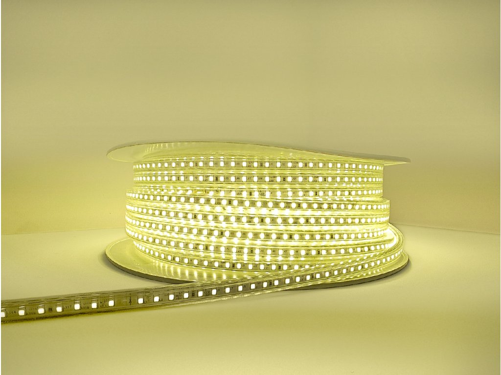 Ide o špeciálny high-voltage LED pásik pre napájanie priamo zo siete AC 230 V, ktorý sa dodáva v originálnom 50m kotúči. Súčasťou balenia je tiež 100 ks montážnych držiakov LED pásky vrátane skrutiek pre jednoduchú inštaláciu. Vďaka celistvému PVC oplášteniu dosahuje pásik krytie IP65, čo zaručuje bezpečné použitie v interiéri aj v chránenom exteriéri. Konštrukcia s nízkym úbytkom napätia zaisťuje rovnomerný jas po celej dĺžke – ani pri zapojení celých 50 m nedochádza k viditeľnému poklesu svietivosti. Pružné telo pásky sa ľahko prispôsobí oblúkom aj rohom a inštalácia je jednoduchá, bez nutnosti externého napájacieho zdroja; pre pripojenie používajte originálny napájací kábel určený pre 230 V systémy.
