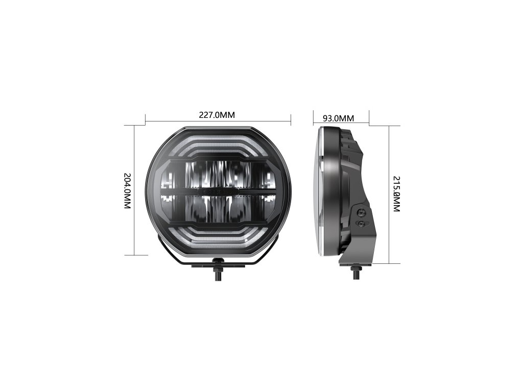 LED pracovný svetlomet v štvorcovom prevedení kombinuje vysoký výkon 160 W s doplnkovým 10 W polohovým svietením v dvoch farbách – studená biela a amber. Vďaka tomu ponúka nielen silné pracovné osvetlenie, ale aj možnosť použiť svetlo ako biele alebo oranžové pozičné svietenie podľa aktuálnej potreby.