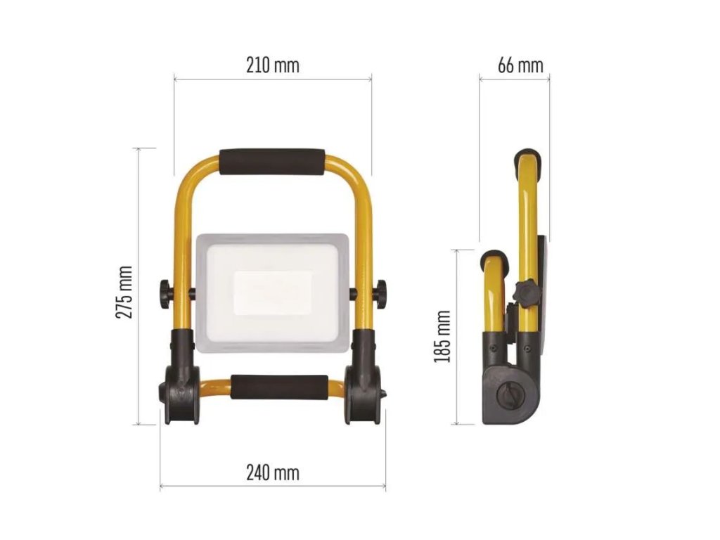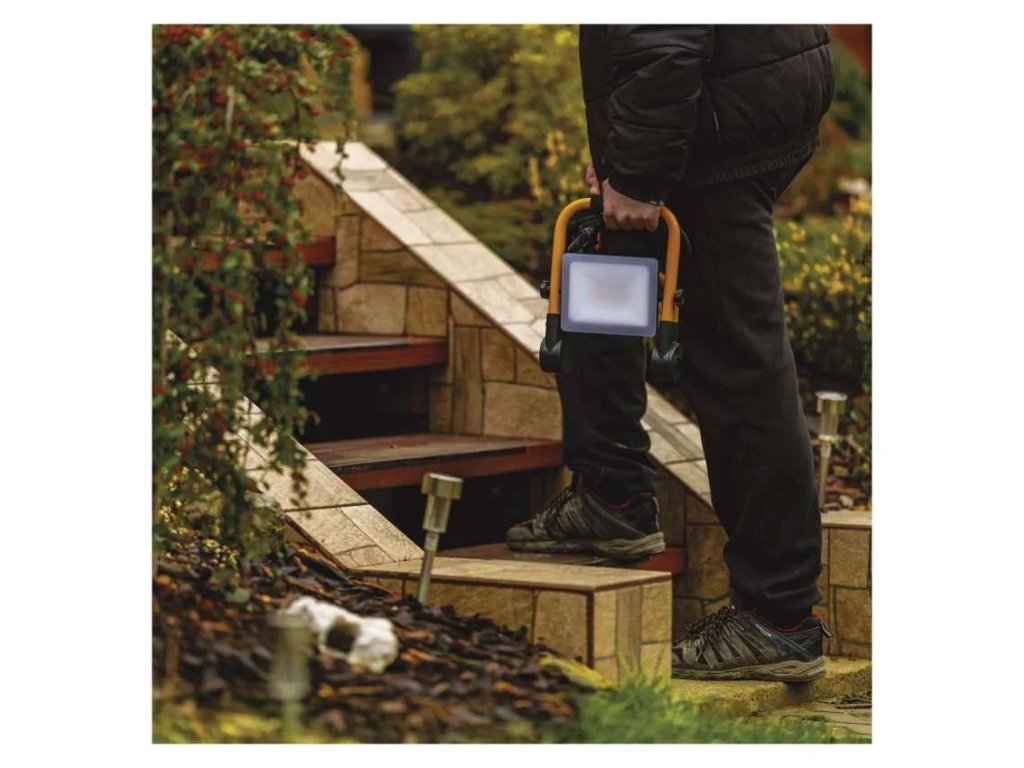 Výkonný prenosný LED reflektor s výkonom 31 W je ideálnou voľbou pre každodenné nasadenie pri osvetlení pracovných priestorov v stavebníctve, dielňach, autoservisoch alebo garážach. Vďaka odolnej konštrukcii z hliníka a plastu, skladaciemu rámu a výrazne žltému sfarbeniu je navrhnutý tak, aby poskytoval spoľahlivý výkon aj v náročných podmienkach, a zároveň sa nestratil ani v neprehľadnom prostredí.