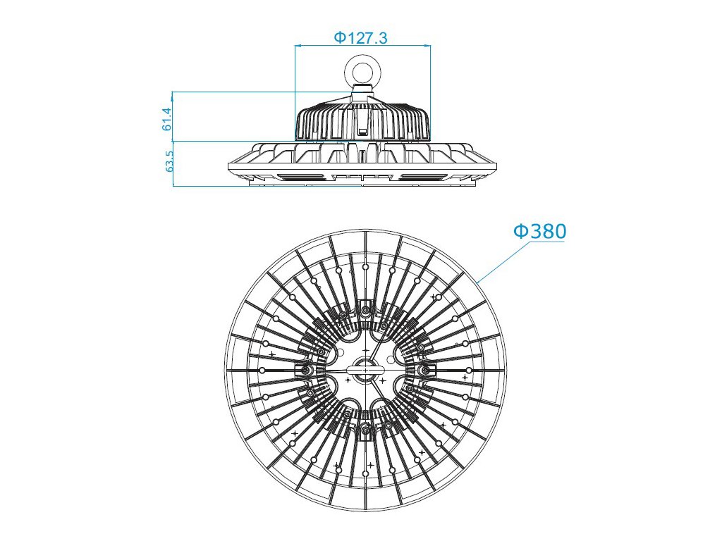 Závesné LED svietidlo typu UFO High-bay je určené na osvetlenie priestorov s vysokými stropmi, ako sú výrobné haly, sklady, dielne, športoviská alebo obchodné priestory. Vďaka krytiu IP65 je odolné proti vlhkosti a prachu, takže spoľahlivo funguje aj v náročnom prostredí.