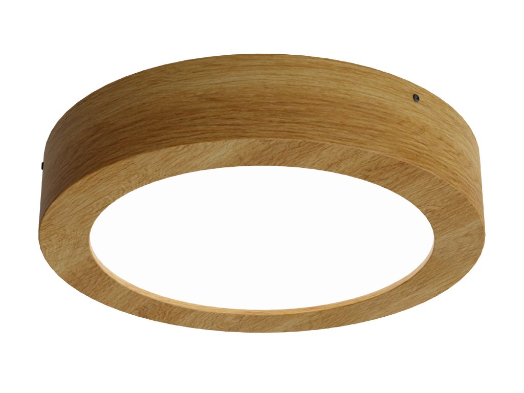 Stropné svietidlo Rondo Woodline od českého výrobcu APLED prepája modernú LED technológiu s nadčasovou krásou masívneho dubového dreva. Precízne spracované drevené telo v kombinácii s kvalitným PMMA difúzorom vytvára príjemne rozptýlené svetlo bez oslnenia, ktoré je vhodné do obývacích izieb, spální, chodieb aj reprezentatívnych komerčných priestorov. Výkon 24 W zabezpečuje dostatočnú intenzitu osvetlenia so svetelným tokom 1600 lúmenov a široký vyžarovací uhol 120° rovnomerne presvetlí celý priestor.