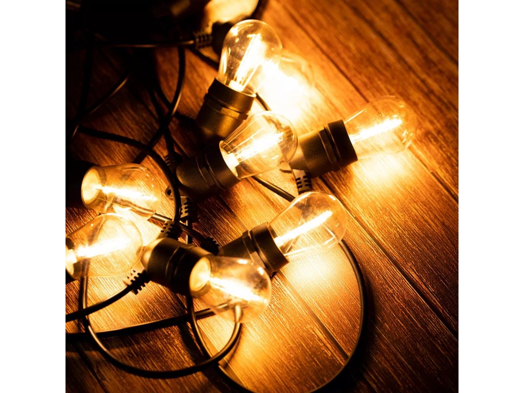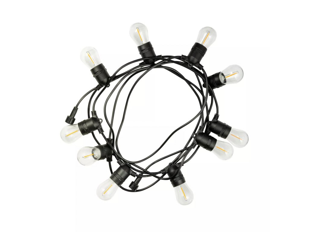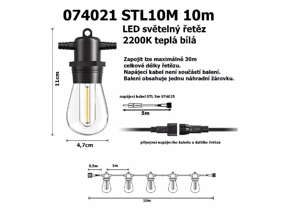 LED svetelná reťaz s výkonom 10W a dĺžkou 10m je vhodná pre vnútorné aj vonkajšie použitie ako dekoračné osvetlenie budov, schodov, reštaurácií a ďalších inštalácií. Týmto LED dekoračnou reťazou je možné osvetliť napríklad časti záhrady a ozvláštniť vonkajšie posedenie alebo terasu, ale tiež ho môžete použiť pri rôznych spoločenských akciách ako svadobné osvetlenie, osvetlenie narodeninových osláv a pri ďalších príležitostiach. Na reťazi je umiestnených 10 objímok vrátane žiaroviek, zároveň je v balení 1 náhradná žiarovka. Objímky sú od seba vzdialené 1 meter.