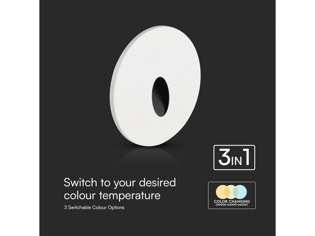 LED vstavané schodiskové svietidlo okrúhle 3v1 3W IP65 CCT