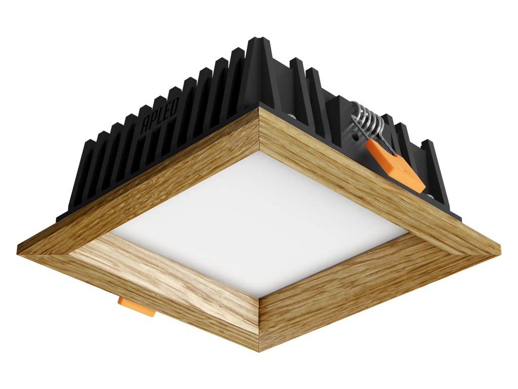 Vstavané stropné svietidlo Square Woodline od českého výrobcu APLED spája modernú LED technológiu s nadčasovou krásou masívneho dubového dreva. Precízne spracovaný drevený rámček v kombinácii s kvalitným PMMA difúzorom zabezpečuje príjemne rozptýlené svetlo bez oslnenia, ktoré prirodzene doplní interiér obývacích izieb, spální, chodieb aj reprezentatívnych komerčných priestorov. Výkon 6 W poskytuje dostatočnú intenzitu osvetlenia so svetelným tokom až 558 lúmenov a široký vyžarovací uhol 105° rovnomerne presvetľuje okolitý priestor.