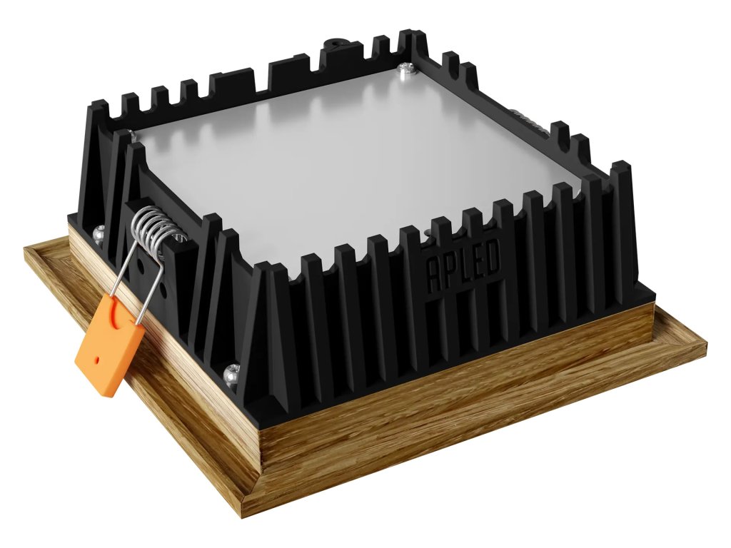 Svietidlo je dostupné vo variante s teplou bielou farbou svetla 3000 K na vytvorenie útulnej atmosféry alebo s dennou bielou 4000 K, ktorá pôsobí prirodzene a sviežo. Vďaka vstavanému vyhotoveniu pôsobí v interiéri veľmi čisto a nenápadne, pričom priznaný drevený detail dodáva stropu osobitý charakter. Na inštaláciu je potrebné pripraviť montážny otvor s rozmerom 105 x 105 mm, svietidlo je následne upevnené pomocou pružinových úchytov, ktoré zabezpečujú rýchlu a bezpečnú montáž.