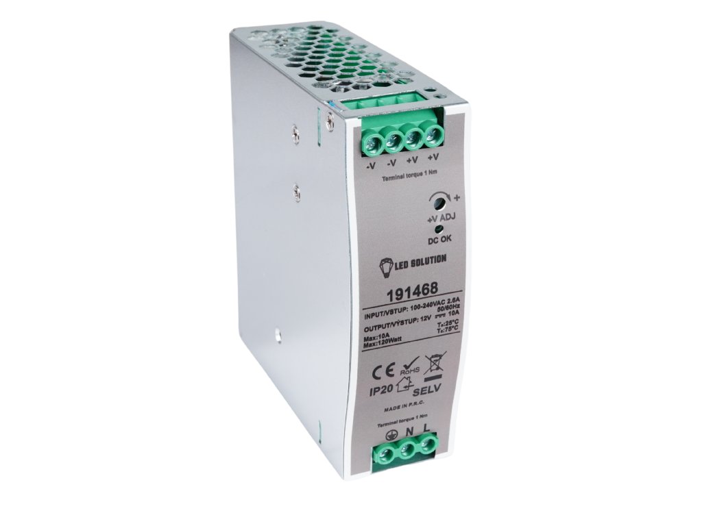 LED elektronický spínaný zdroj pre LED pásiky s výkonom 120W určený na vnútorné použitie. Konštrukcia umožňuje uchytenie na DIN lištu priamo do rozvádzača. Zdroj je vybavený tepelnou ochranou, ochranou proti skratu aj proti preťaženiu a ponúka možnosť manuálneho doladenia výstupného napätia v rozsahu ±10%.